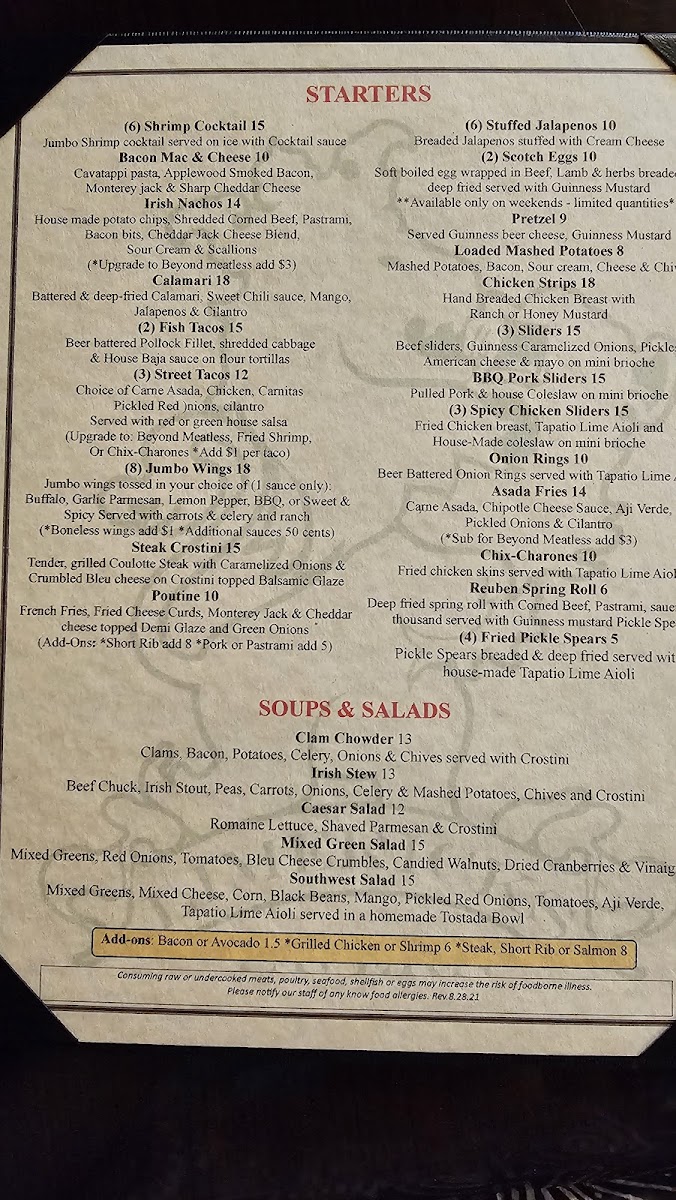 Customers rave about the attentive service—from the friendly staff to personalized touches that enhance the dining experience. One patron, Tiffany, highlights how recent changes in management have revitalized the menu, creating a fresh, modern take on classic dishes, while others have praised the flavorful combinations and generous portions. Whether you're indulging in the Shepherd's Pie, beautifully topped with cheese, or embracing pub classics like Corned Beef & Cabbage, you're bound to leave with your cravings fully satisfied.